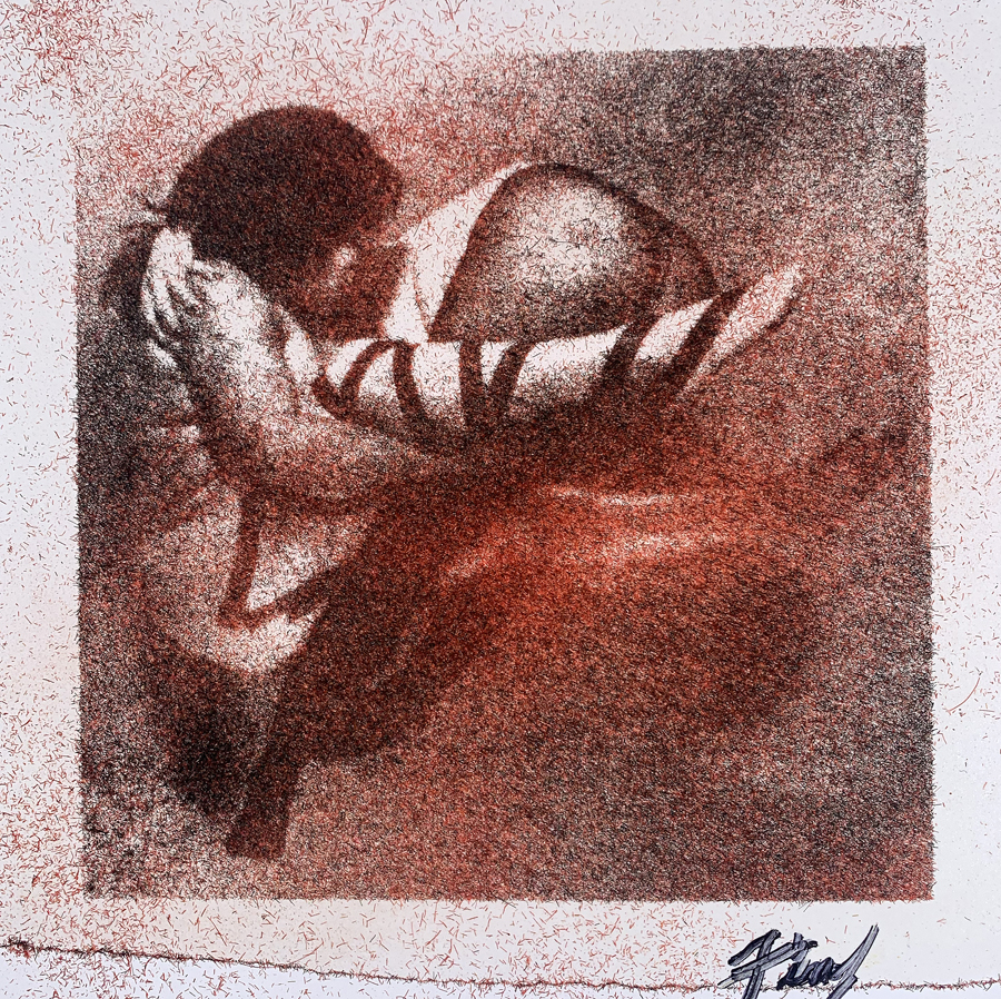“MY MOTHER AND I” Picture of both of us is made with my mother’s hair.
